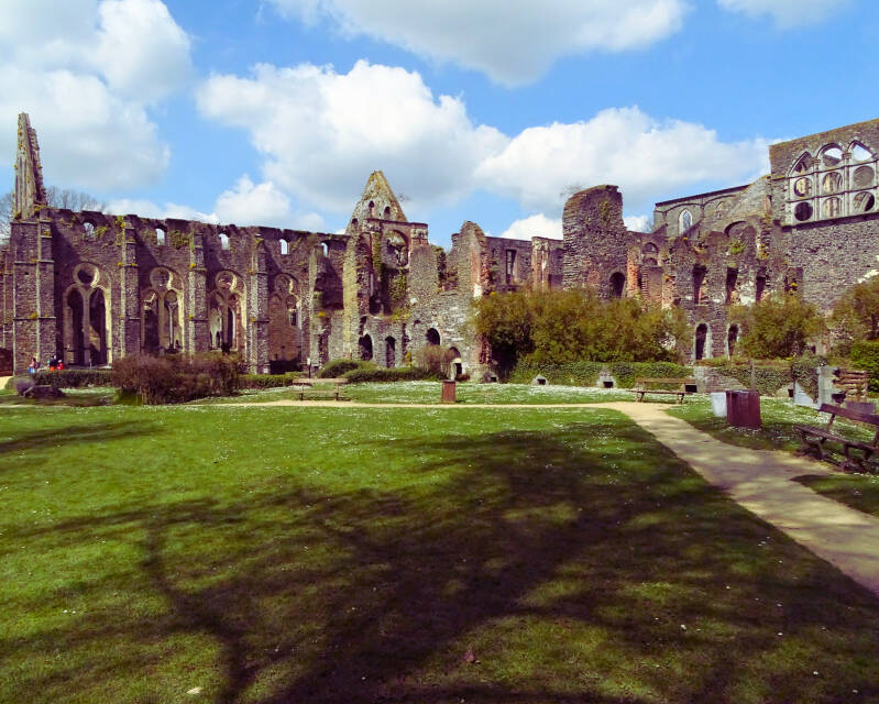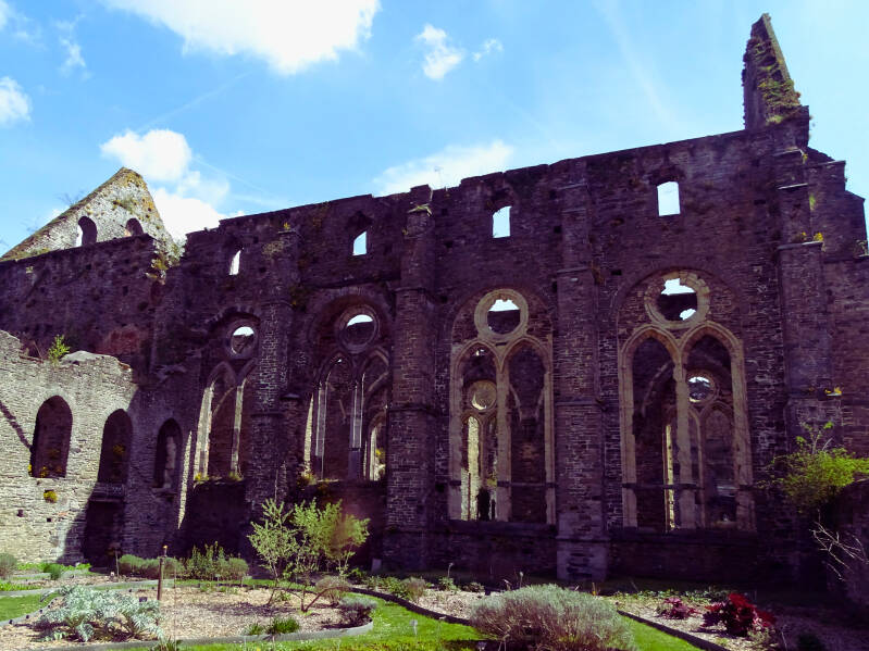 Esta Abadía comenzó a construirse en 1197 y tardó un siglo aproximadamente en terminar de construirse. En 1263 se enterró aquí a Goberto de Aspremont, un guerrero de las Cruzadas que se convirtió en monje. En la Revolución Francesa, se expulsaron a los momonjes, sufriendo después saqueos y desmantelamientos y, finalmente, con el abandono, en 1796 la abadía quedó en ruinas, que acabaron atrayendo en 1830 a románticos y a la realeza y eso, sumado a la construcción del ferrocarril cerca de los jardines, hizo que se comenzara un proyecto de restauración, hasta que el 1972 las ruinas fueron catalogadas monumento histórico. Actualmente se pueden visitar las ruinas y sus jardines pagando una entrada de 10 euros. Además, en su exterior hay una fábrica de cerveza donde probar una cerveza buenísima con vistas espectaculares.