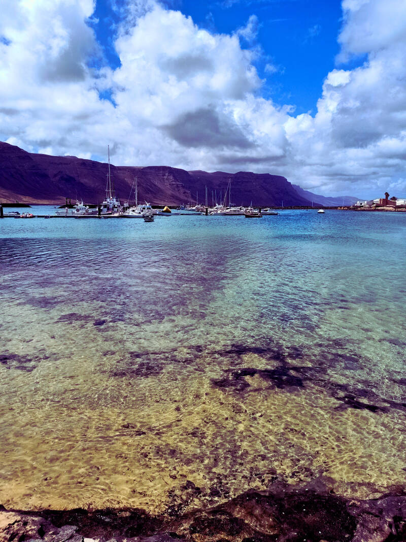 Para llegar, hay que coger un ferry en Órzola, Lanzarote, que dura aproximadamente 25-30 minutos.