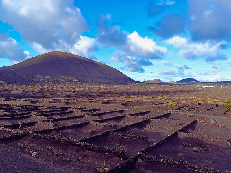 Los viñedos de Lanzarote son únicos en el mundo debido a su suelo volcánico y las técnicas de cultivo adaptadas a las condiciones extremas de la isla. A diferencia de otros viñedos, aquí las vides crecen en hoyos excavados en la ceniza volcánica, protegidas por pequeños muros de piedra que las resguardan del viento. A pesar del clima árido y la escasez de lluvias, los agricultores han desarrollado un método que permite a las plantas absorber la humedad del suelo volcánico, lo que da lugar a vinos con un sabor muy característico.