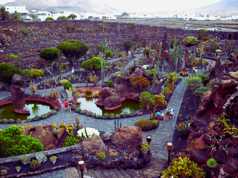 Jardín creado por César Manrique, que recoge 4.500 ejemplares de cactus de unas 500 especies procedentes de los cinco continentes. Este jardín, donde destaca la presencia de piedra volcánica, está repleto de elementos decorativos y esculturas , como monolitos basálticos, que se encuentran integrados en el entorno. Esto, combinado con los colores, formas y relieve que dejan los cactus, hacen de este lugar algo mágico.