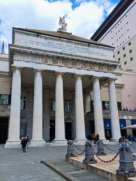 Una plaza espectacular rodeada por el Palacio Ducale, el Palacio de la Región Liguria, el Palacio della Borsa, y la Ópera. Todos estos edificios hacen que esta plaza sea algo mágico y, por la noche, con todo iluminado, es una zona que invitar a quedarse. Justo detrás de la Ópera se encuentra Galleria Giuseppe Mazzini.